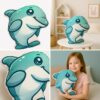 Weryfikacja ze zdjęciem: na fotografii widoczna jest pluszowa poduszka w kształcie delfina w odcieniach turkusowo‑niebieskich, co potwierdza materiał i motyw. Wymiary 43×40 cm podane w specyfikacji nie mogą być jednoznacznie zweryfikowane wyłącznie na podstawie zdjęcia.