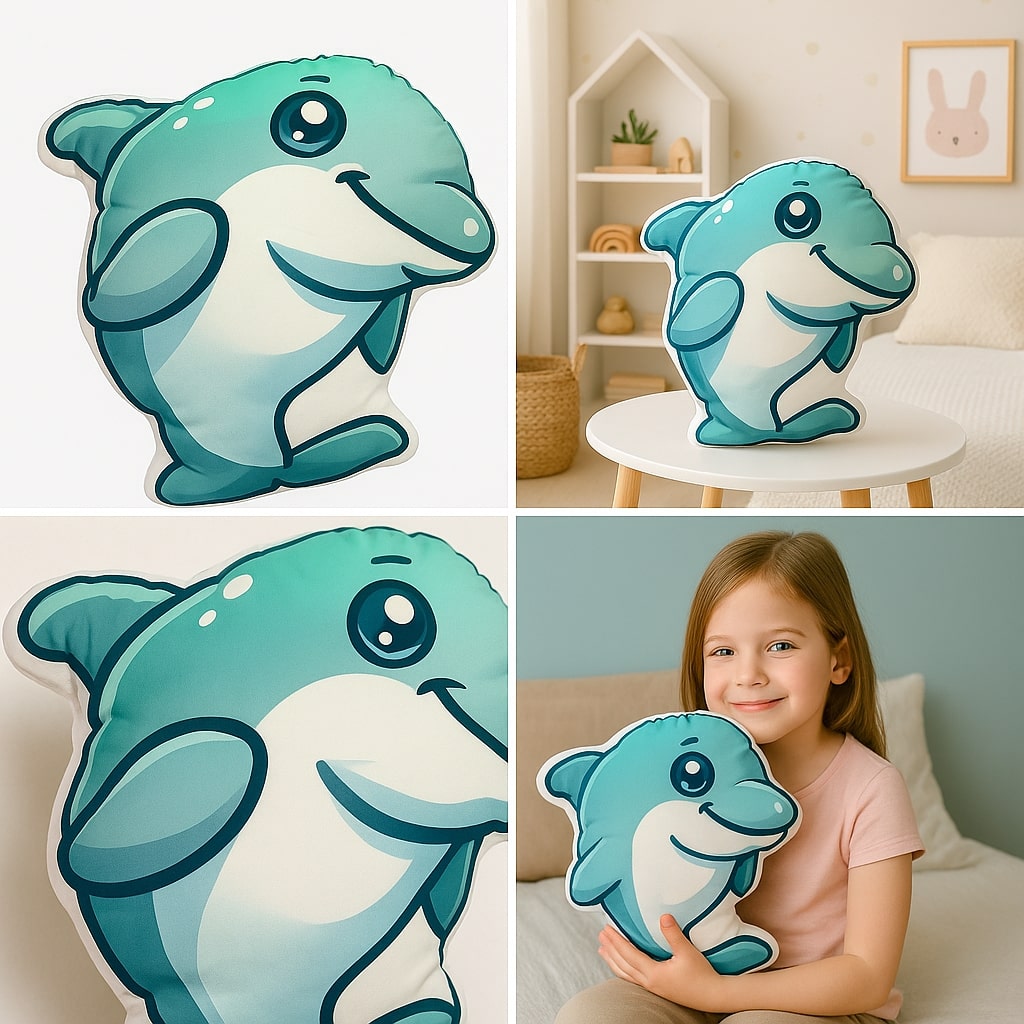 Pluszowa poduszka w kształcie sympatycznego delfina szybko odmieni każde wnętrze. Miękki i przyjemny w dotyku materiał zachęca do przytulania i relaksu. Odcienie turkusu i błękitu wprowadzają morski klimat, który sprawdzi się w pokoju dziecka, sypialni i salonie. Model łączy funkcję ozdoby z praktycznym wsparciem pod głowę podczas czytania lub oglądania. Zgrabny rozmiar 43×40 cm łatwo ułożysz na kanapie, fotelu lub łóżku. To także gotowy pomysł na prezent dla miłośników zwierząt i morskich motywów.