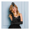 Zestaw akcesoriów damskich w stylu retro inspirowany modą lat 20. to idealne uzupełnienie stylizacji w klimacie Great Gatsby. Eleganckie perły, długie rękawiczki i charakterystyczna opaska z piórem pozwolą stworzyć wyrazisty, kobiecy look w duchu epoki jazzu. To doskonały wybór na imprezy tematyczne, bale karnawałowe, wieczory panieńskie czy sesje zdjęciowe. Klasyczna kolorystyka czerni i bieli podkreśla ponadczasową elegancję i dodaje stylizacji szyku.
