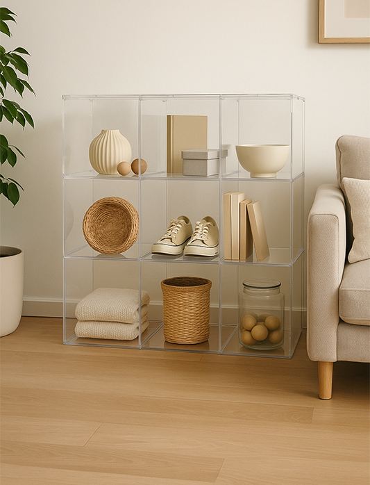 - Przezroczysta akrylowa konstrukcja – elegancki wygląd i pełna widoczność zawartości.