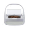 Karmnik wykonany jest z wysokiej jakości, trwałego plastiku, odpornego na uszkodzenia i łatwego do czyszczenia. Posiada dwie osobne miski o pojemności 400 g każda, idealne do przechowywania zarówno karmy suchej, jak i mokrej. Przezroczysta, podnoszona pokrywa chroni jedzenie przed kurzem, owadami i dostępem innych zwierząt, jednocześnie pozwalając na stałą kontrolę ilości karmy. Dzięki nowoczesnemu designowi karmnik świetnie prezentuje się w każdym wnętrzu – jest estetyczny, funkcjonalny i niezwykle praktyczny w codziennym użytkowaniu.