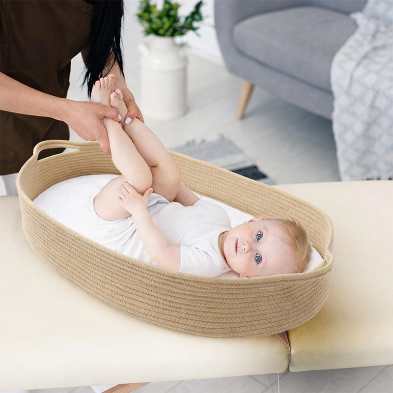 Bawełniany przewijak z miskami – naturalna przestrzeń do pielęgnacji dziecka