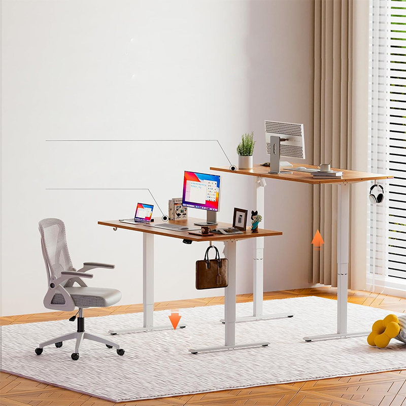 Funkcjonalne biurko z regulacją wysokości to idealne rozwiązanie do nowoczesnego biura, home office oraz stanowiska komputerowego. Umożliwia wygodną pracę zarówno w pozycji siedzącej, jak i stojącej, poprawiając ergonomię oraz komfort codziennego użytkowania. Minimalistyczny design, duży blat oraz solidna konstrukcja sprawiają, że biurko doskonale sprawdzi się zarówno do pracy biurowej, nauki, jak i pracy kreatywnej.