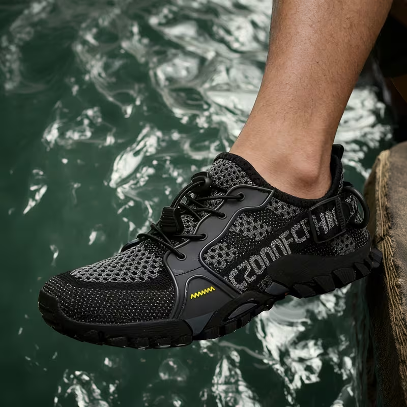 Funkcjonalne buty do wody dla mężczyzn zaprojektowane z myślą o maksymalnym komforcie podczas aktywności nad wodą. Lekka i oddychająca konstrukcja sprawia, że idealnie sprawdzą się na plaży, basenie, kajakach czy podczas spacerów po mokrych nawierzchniach. Szybkoschnący materiał skutecznie odprowadza wilgoć, a elastyczna budowa zapewnia idealne dopasowanie do stopy. Antypoślizgowa podeszwa zwiększa bezpieczeństwo na śliskim podłożu. Nowoczesny, sportowy design łączy wygodę z praktycznością.