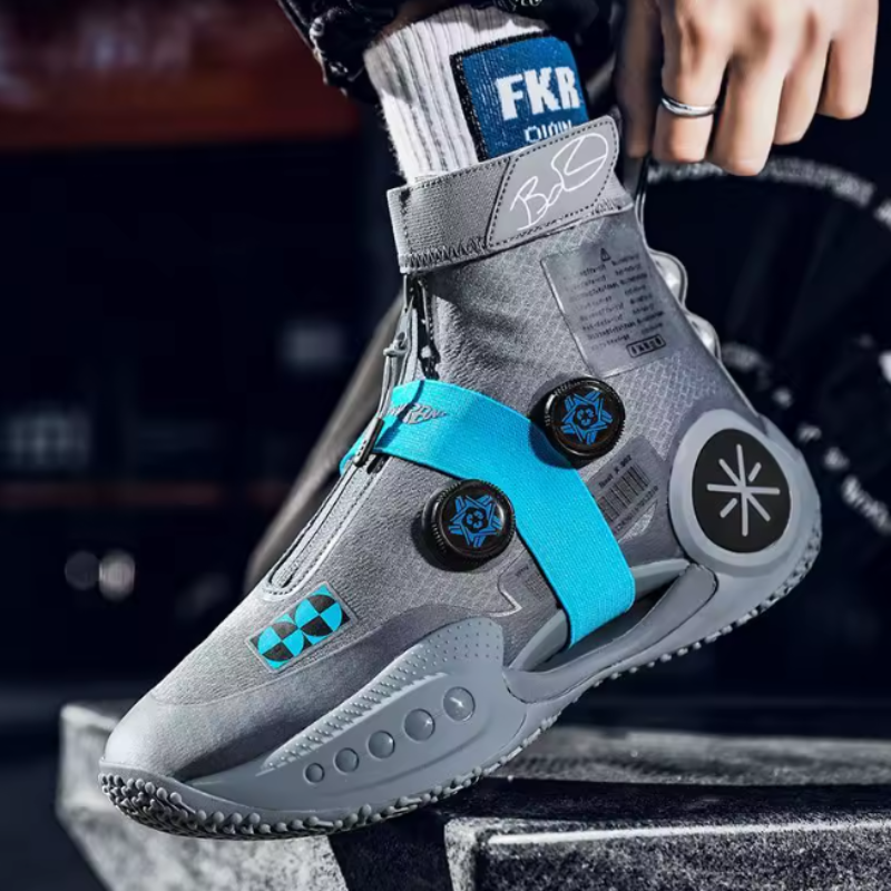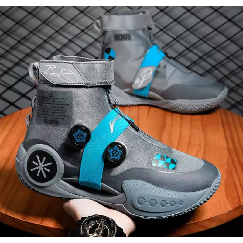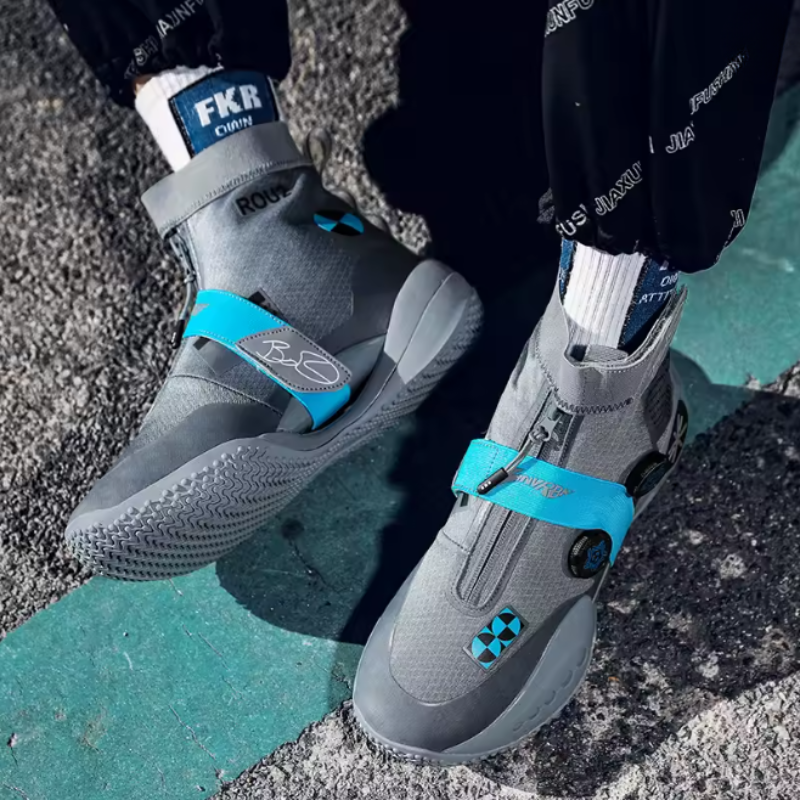 Nowoczesne buty sportowe stworzone z myślą o intensywnym użytkowaniu na boisku i poza nim. Dynamiczny design w odcieniach szarości z niebieskimi akcentami przyciąga wzrok i podkreśla sportowy charakter. Model za kostkę zapewnia lepszą stabilizację stopy, co jest szczególnie istotne podczas gry w koszykówkę. Oddychające materiały zwiększają komfort nawet podczas długiego treningu. To idealny wybór dla osób, które oczekują połączenia stylu, funkcjonalności i wygody.