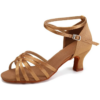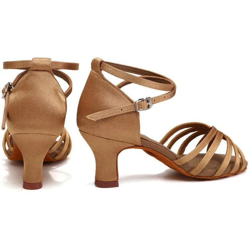 Eleganckie i funkcjonalne buty taneczne stworzone z myślą o kobietach ceniących komfort oraz styl na parkiecie. Jasny brązowy odcień doskonale komponuje się z różnymi stylizacjami tanecznymi, podkreślając naturalną linię stopy. Stabilny obcas o wysokości 5,5 cm zapewnia wygodę nawet podczas długich treningów i występów. Miękka konstrukcja oraz dobrze dopasowane paski gwarantują pewne trzymanie stopy. To idealny wybór zarówno dla początkujących, jak i zaawansowanych tancerek.