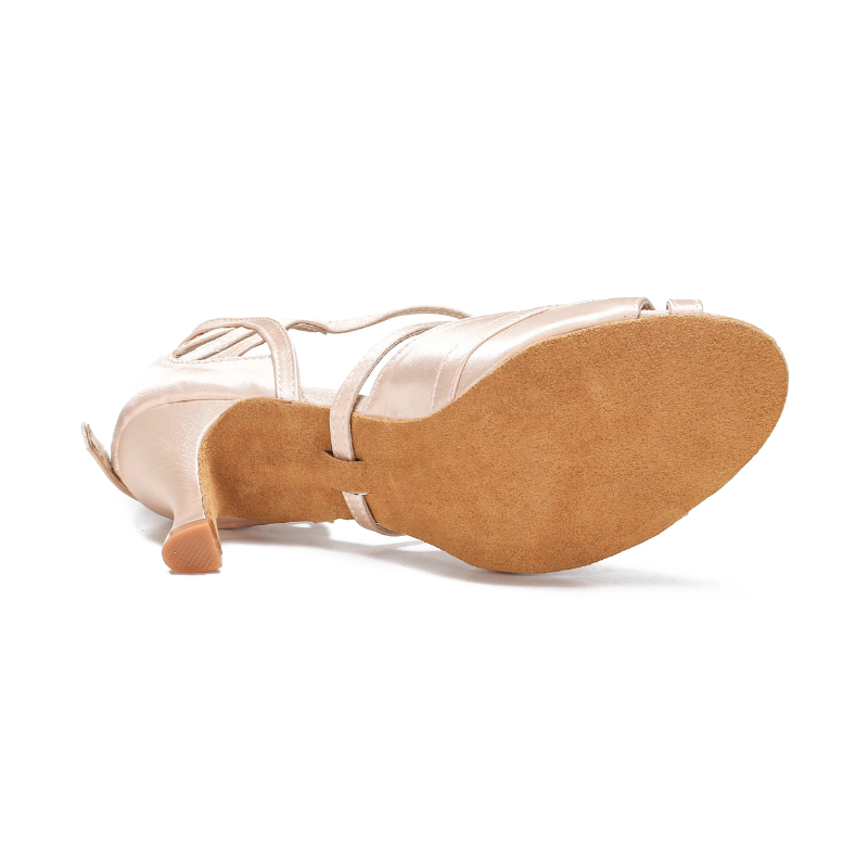 Eleganckie buty taneczne w odcieniu szampańskim to idealny wybór dla kobiet ceniących klasykę i minimalizm. Ich subtelny połysk oraz gładka satynowa powierzchnia podkreślają wyjątkowy charakter każdego stroju tanecznego. Model został zaprojektowany z myślą o komforcie oraz stabilności podczas intensywnego użytkowania. Smukły obcas typu flare zapewnia odpowiednie podparcie i pewność ruchów. To doskonałe rozwiązanie zarówno dla początkujących, jak i zaawansowanych tancerek.
