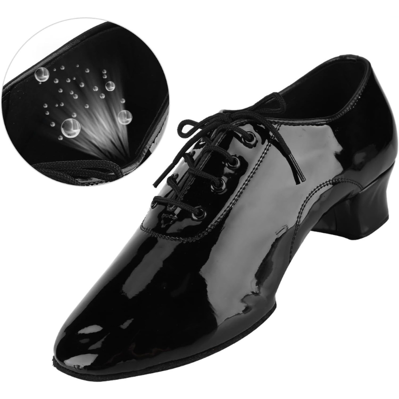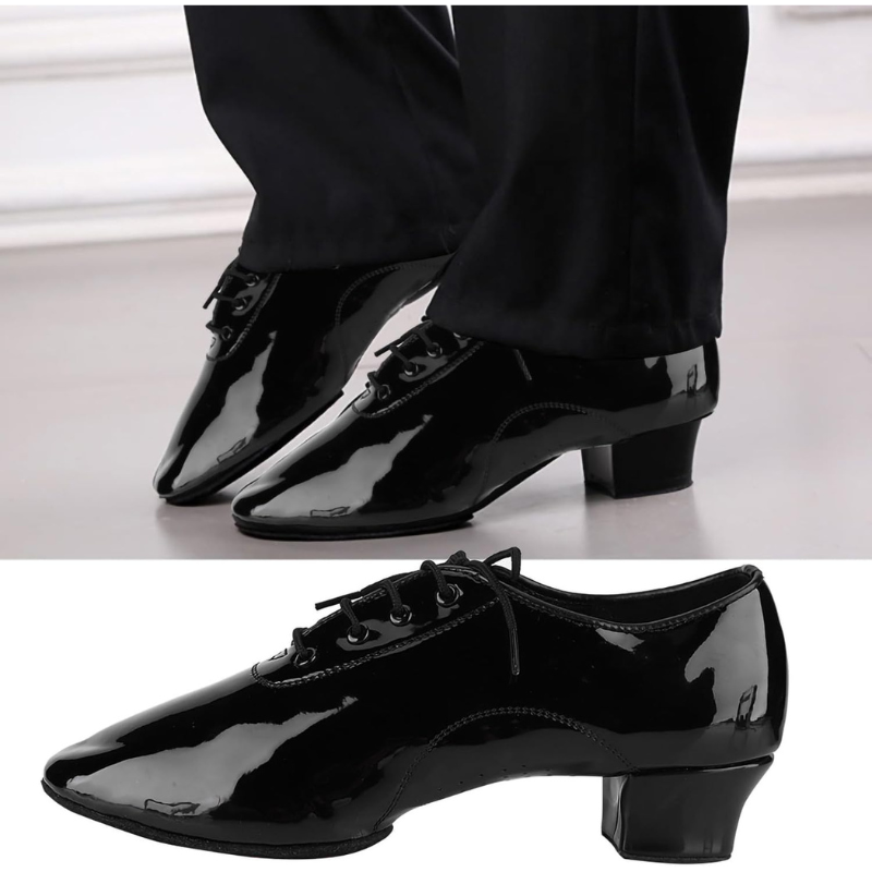 Eleganckie buty taneczne męskie w klasycznym czarnym kolorze to doskonały wybór dla każdego miłośnika tańca. Lakierowane wykończenie nadaje im wyjątkowo stylowy charakter, który świetnie prezentuje się na parkiecie. Model ten łączy w sobie estetykę i funkcjonalność, zapewniając wygodę nawet podczas długich treningów czy występów. Stabilny obcas oraz odpowiednia konstrukcja wspierają naturalny ruch stopy. Dzięki oddychającym materiałom obuwie zapewnia komfort termiczny i świeżość. To idealna propozycja do tańców latynoamerykańskich oraz towarzyskich.