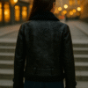 Damska czarna kurtka biker ocieplana z motywem moro rozmiar M