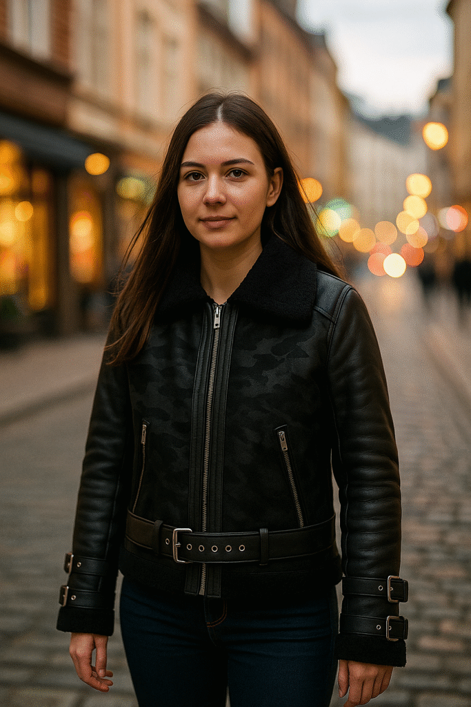 Stylowa damska kurtka typu biker to idealny wybór na chłodniejsze dni, jeśli cenisz modny wygląd i wygodę. Połączenie czarnej kolorystyki z delikatnym wzorem moro dodaje jej charakteru, a ocieplenie zapewnia komfort termiczny w sezonie jesienno-zimowym.