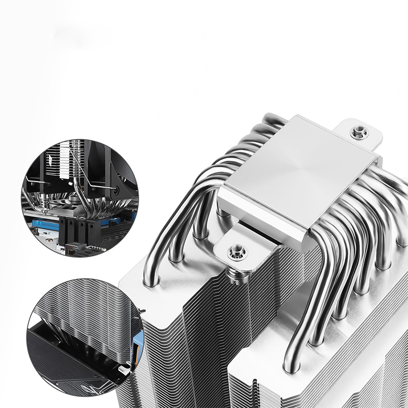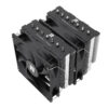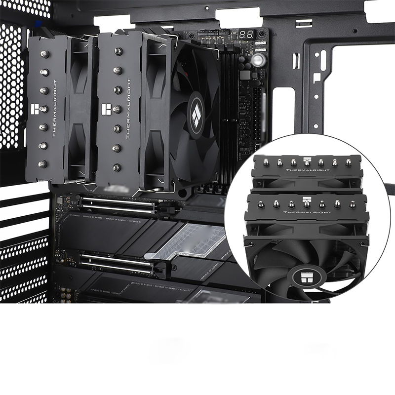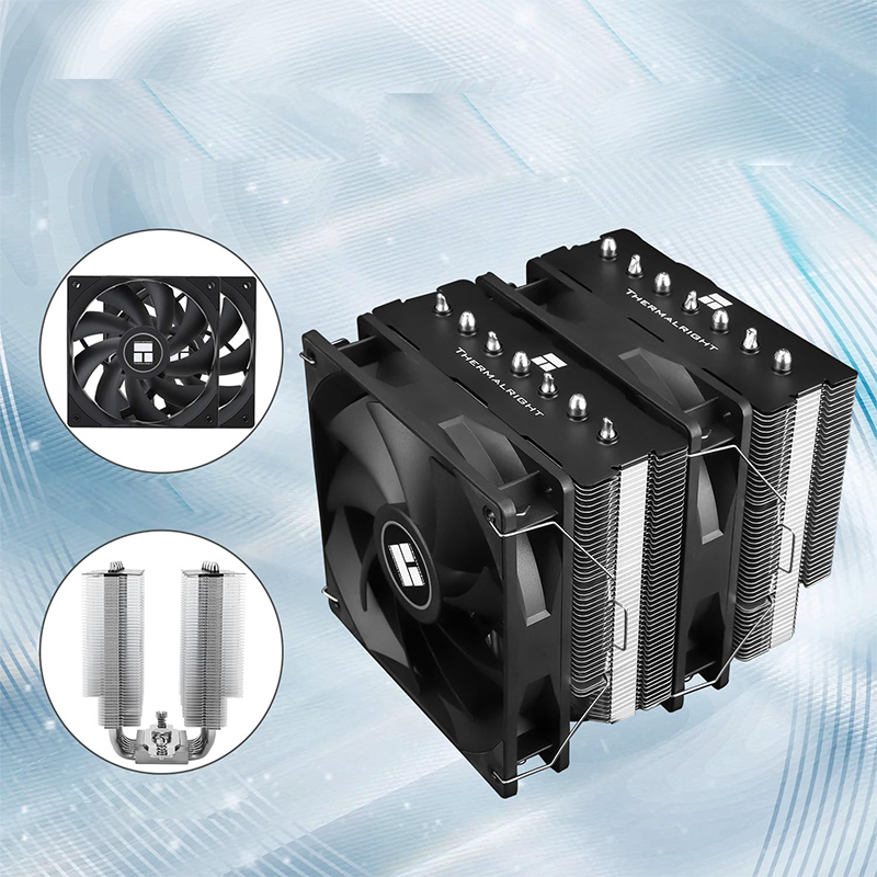 Zastosowany radiator z wysokiej jakości aluminium efektywnie odprowadza ciepło, a dwa wentylatory 120 mm z łożyskiem S-FDB zapewniają cichą, wydajną i długotrwałą pracę. Sterowanie PWM pozwala na automatyczne dostosowanie prędkości wentylatora do temperatury procesora, co gwarantuje idealny balans między wydajnością a poziomem hałasu.