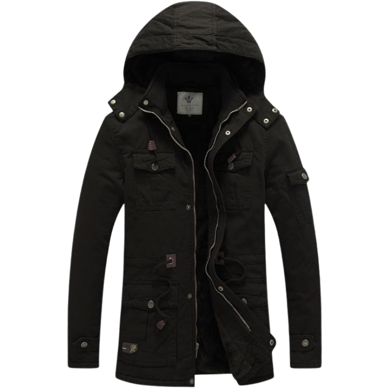 Kurtka męska czarna casual z kapturem ocieplana wielokieszeniowa XL