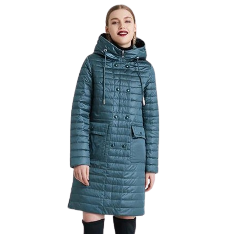 Stylowa i funkcjonalna kurtka damska w satynowym odcieniu niebieskiego, idealna na jesień i zimę. Świetnie chroni przed wiatrem i wilgocią, a dołączony dzianinowy szalik uzupełnia całość, tworząc praktyczny i elegancki zestaw. Idealna do codziennych stylizacji w chłodniejsze dni.