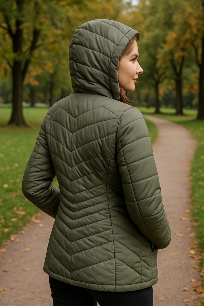 Lekka, ocieplana kurtka w modnym, oliwkowym kolorze to idealne rozwiązanie na chłodniejsze dni. Dzięki klasycznemu krojowi do bioder i pikowanej strukturze prezentuje się stylowo, a jednocześnie zapewnia wygodę i ciepło.