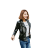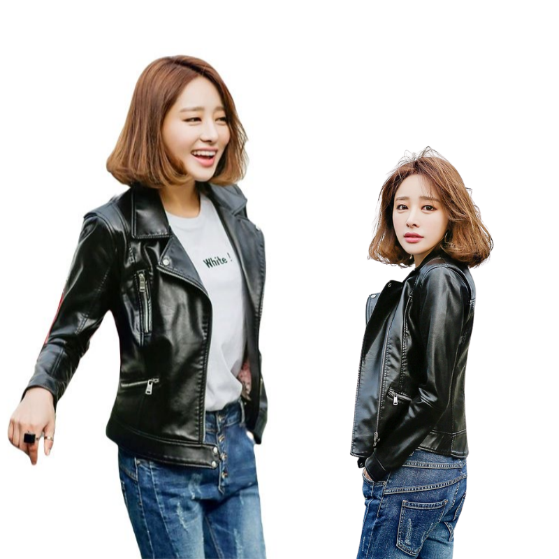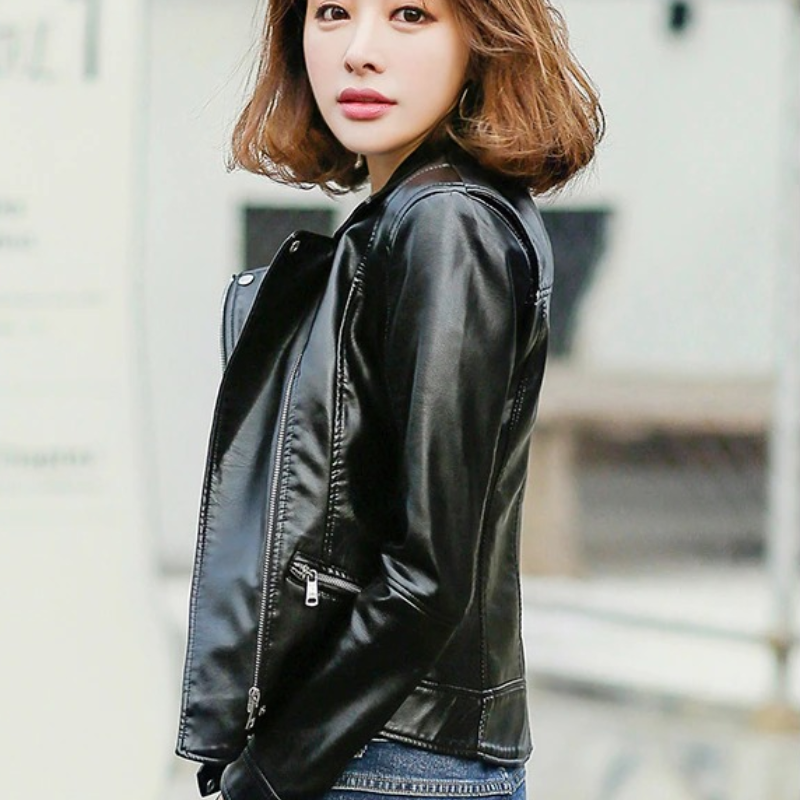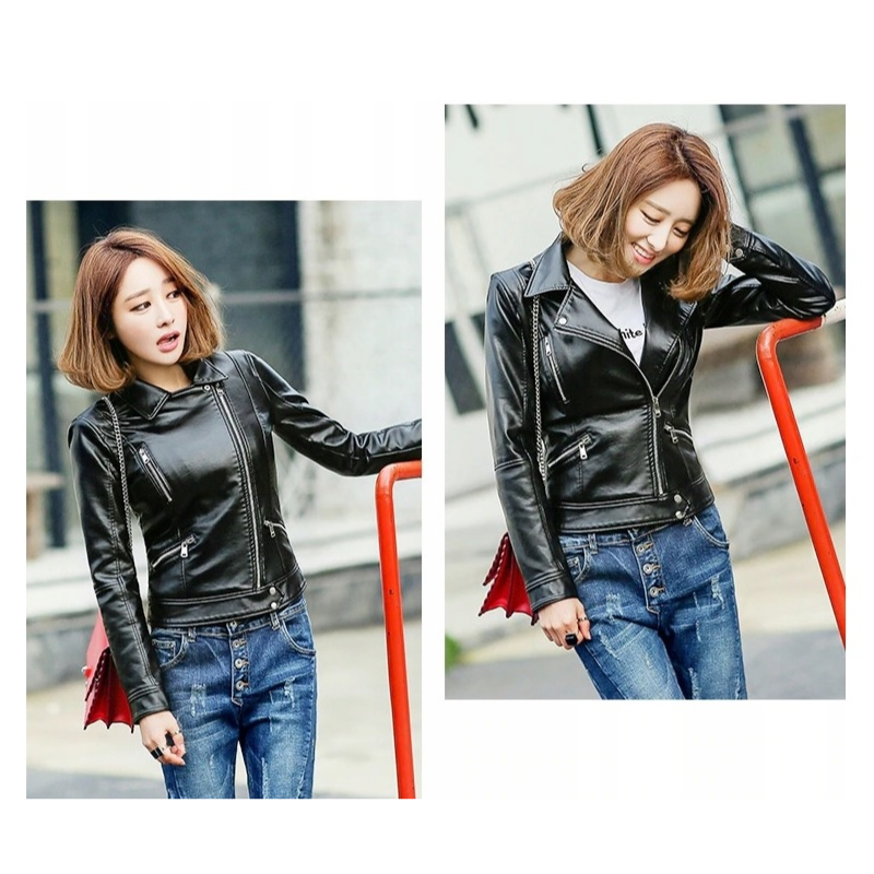 • Modna damska ramoneska w klasycznym czarnym kolorze