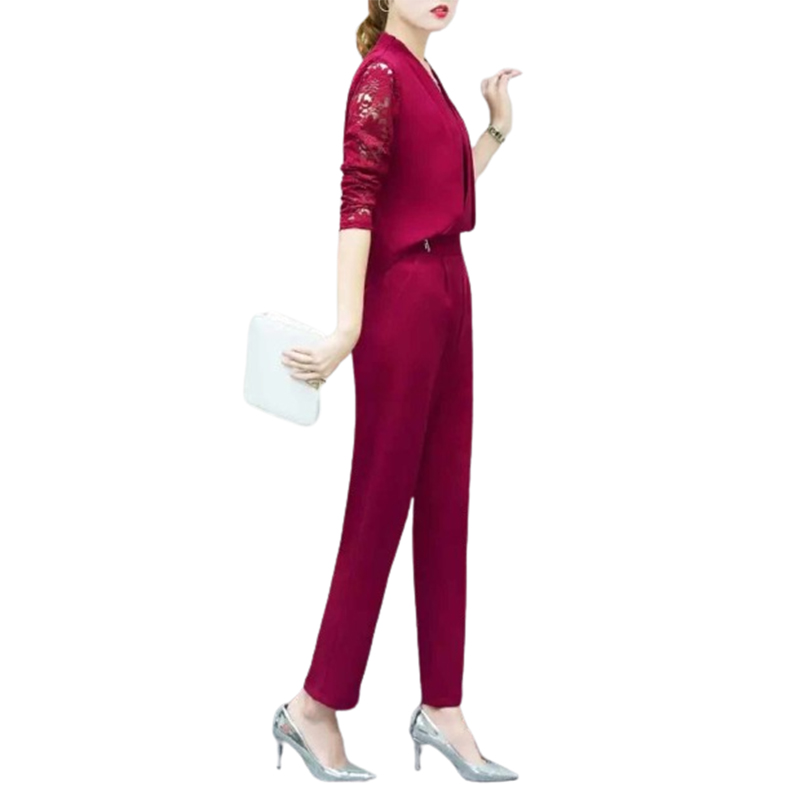 Wyjątkowo elegancki damski kombinezon w głębokim bordowym kolorze to propozycja dla kobiet, które cenią styl i wygodę w jednym. Nowoczesny fason z długimi, delikatnie koronkowymi rękawami oraz dekoltem w serek pięknie podkreśla kobiecą sylwetkę i sprawia, że strój prezentuje się z klasą zarówno na co dzień, jak i na specjalne okazje.