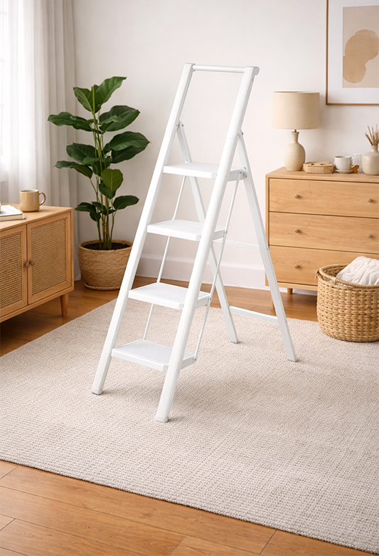 Biała drabina składana 4-stopniowa – bezpieczeństwo i wygoda w domu