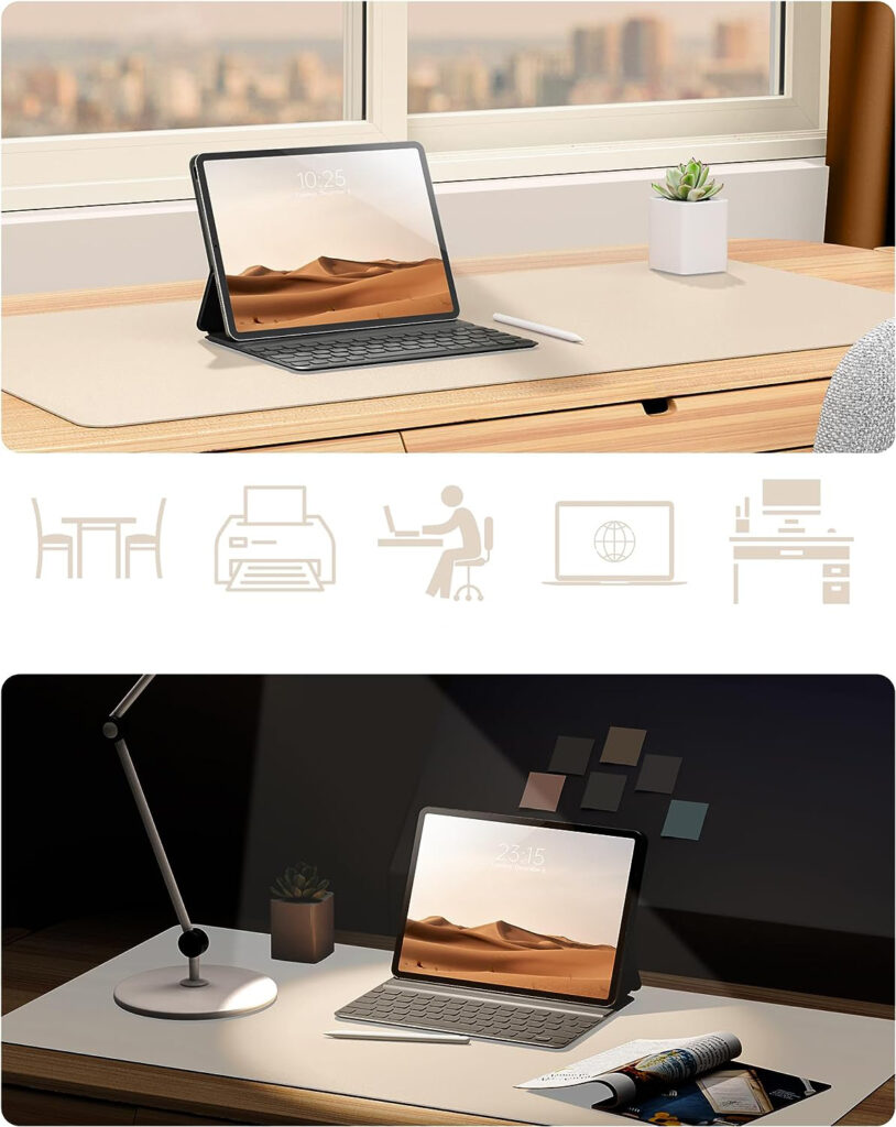 Nadaj swojemu biurku nowoczesny wygląd i wyjątkową funkcjonalność! Stylowa podkładka ochronna z eko skóry PU o wymiarach 60 × 35 cm to idealne połączenie elegancji i praktyczności. Doskonale chroni blat przed zarysowaniami, zabrudzeniami i zalaniem, a przy tym nadaje przestrzeni roboczej estetyczny, uporządkowany charakter.