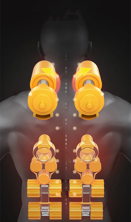 Zaawansowany system masażu obejmuje szeroki obszar ciała, docierając do wielu punktów akupunkturowych. Techniki inspirowane masażem głębokim V, tajskim masażem pleców Gua Sha oraz klasycznym ugniataniem skutecznie redukują napięcie i przynoszą natychmiastową ulgę.
