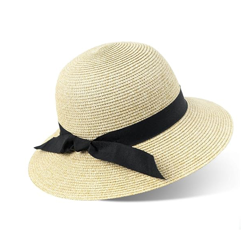 Stylowy kapelusz damski przeciwsłoneczny, który doskonale sprawdzi się w letnie, słoneczne dni. Klasyczny fason w połączeniu z jasnym, naturalnym kolorem nadaje mu ponadczasowy charakter, a kontrastowa czarna wstążka dodaje elegancji i kobiecego stylu.