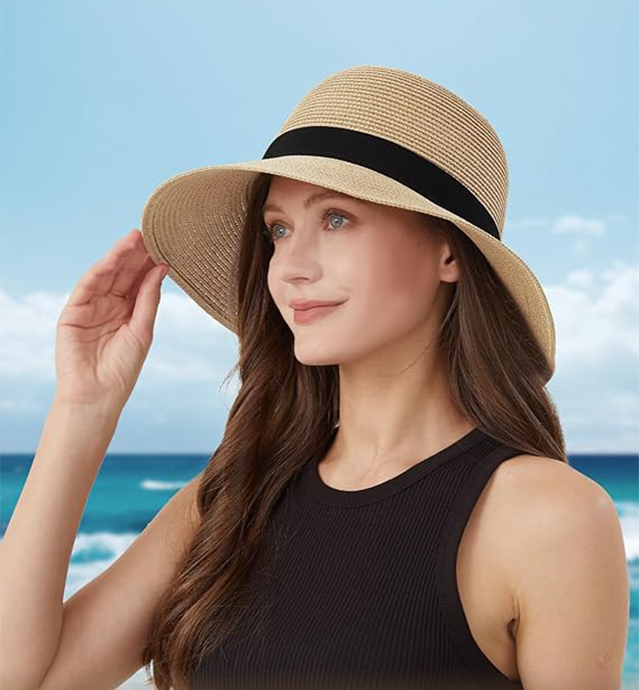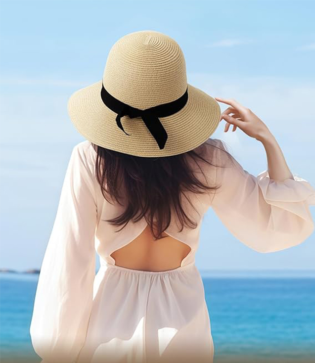 Kapelusz jest lekki, wygodny i przewiewny, dzięki czemu zapewnia komfort noszenia nawet podczas wysokich temperatur. Szerokie rondo skutecznie chroni twarz i oczy przed słońcem, czyniąc go idealnym dodatkiem na plażę, wakacyjne spacery, wyjazdy, ogród czy letnie stylizacje miejskie.