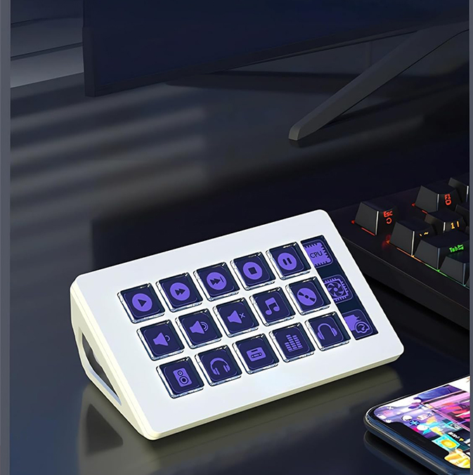 Wyposażona w 15 w pełni programowalnych klawiszy, umożliwia przypisywanie nieograniczonej liczby skrótów, funkcji i komend. Każdy przycisk można spersonalizować – od ikon, przez układ, aż po przypisane akcje – co pozwala dostosować urządzenie dokładnie do własnych potrzeb.