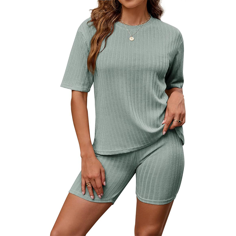 Prążkowana struktura tkaniny nadaje całości nowoczesnego charakteru, dzięki czemu komplet świetnie sprawdzi się zarówno w codziennych stylizacjach, jak i podczas wypoczynku w domu, spacerów czy wyjazdów.