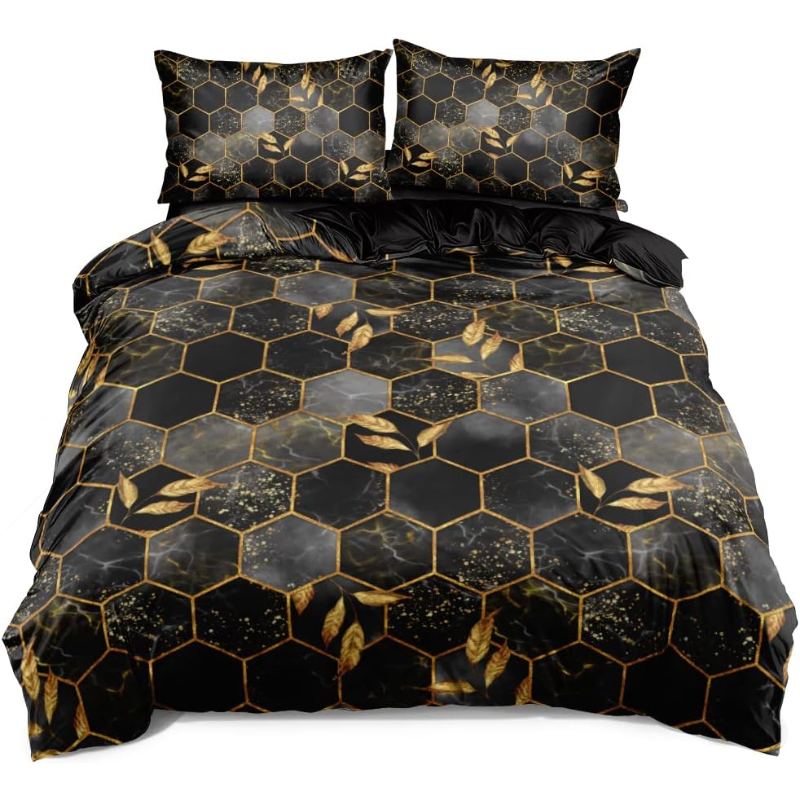 Komplet pościeli 135×200 mikrofibra czarno szaro złota geometryczna