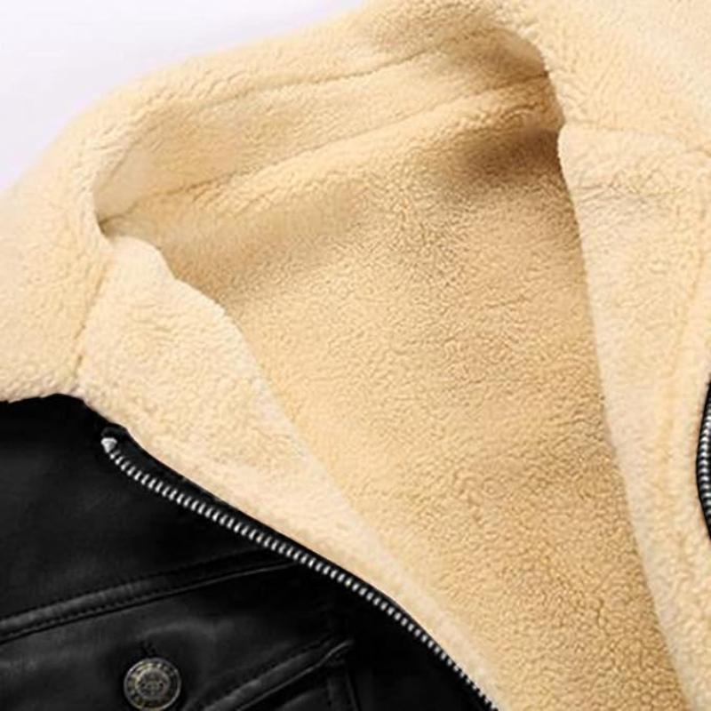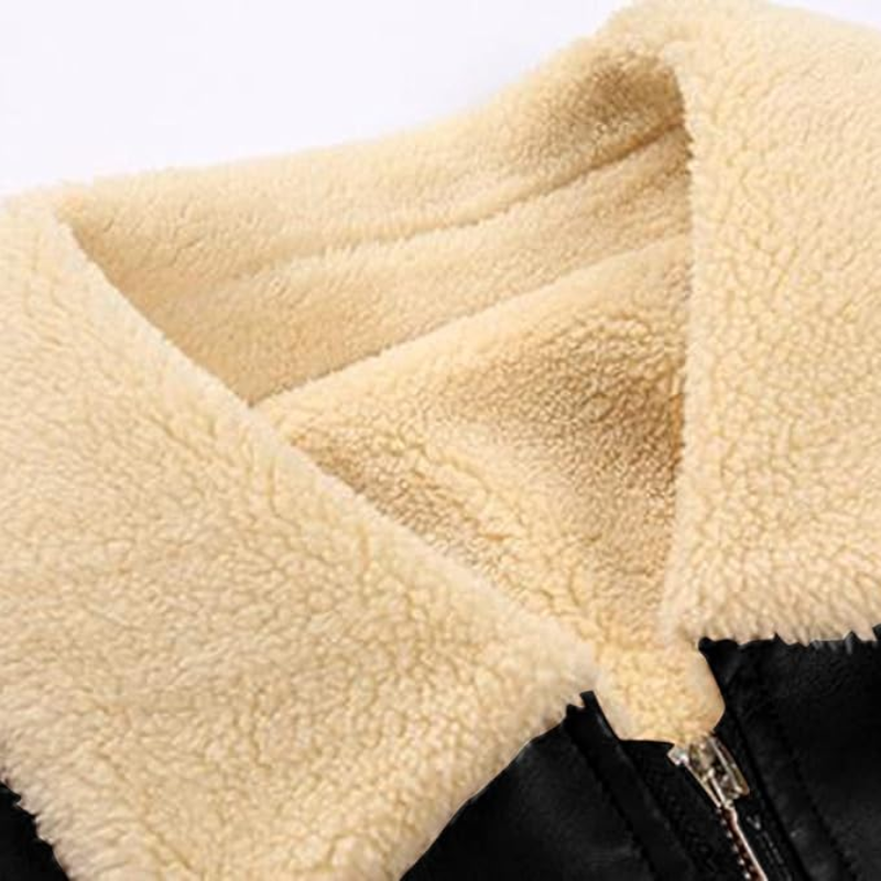 - Modny fason pilotki z kożuchem przy kołnierzu