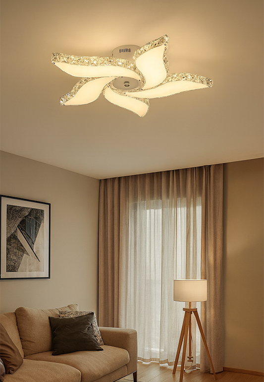 Ta wyjątkowa lampa sufitowa LED z kryształami to idealne połączenie nowoczesnego designu, elegancji i funkcjonalności. Jej efektowna, falująca forma przypominająca kwiat lub wirujące płatki natychmiast przyciąga wzrok i staje się dekoracyjnym centrum każdego pomieszczenia.
