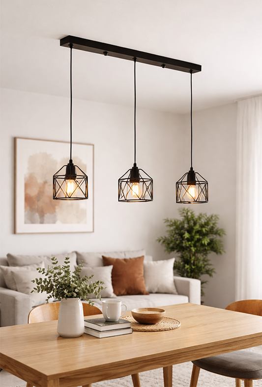 Efektowna lampa wisząca w czarnym macie to doskonałe rozwiązanie do wnętrz w stylu industrialnym, loftowym oraz nowoczesnym. Metalowa konstrukcja oraz geometryczne klosze tworzą wyjątkowy, designerski akcent nad stołem, wyspą kuchenną lub w salonie.