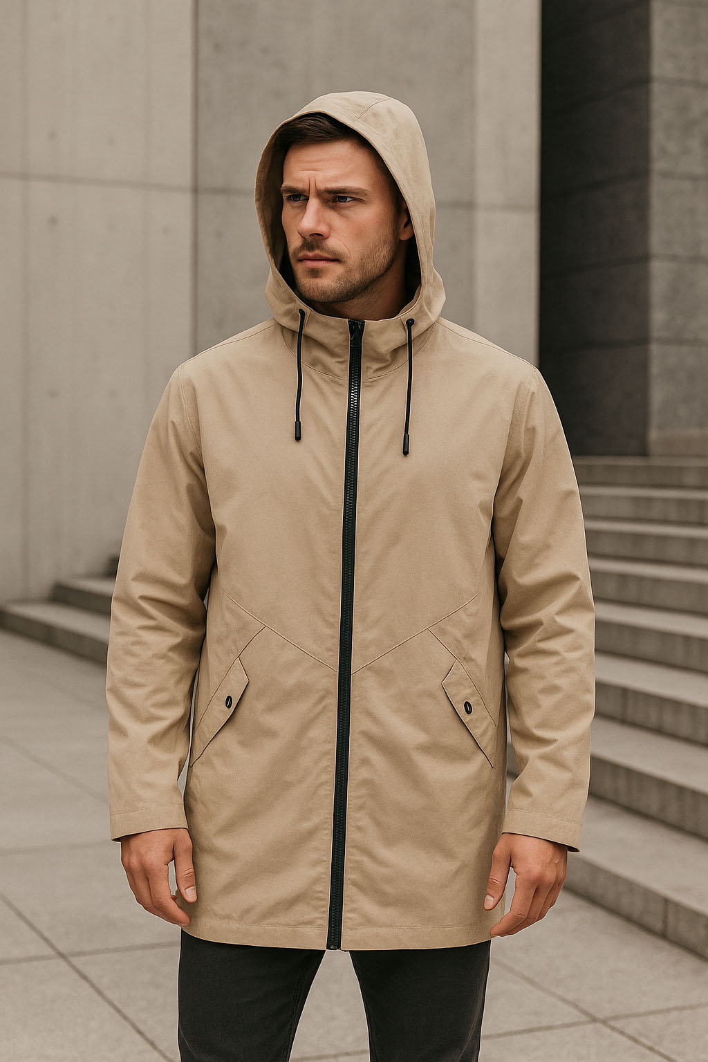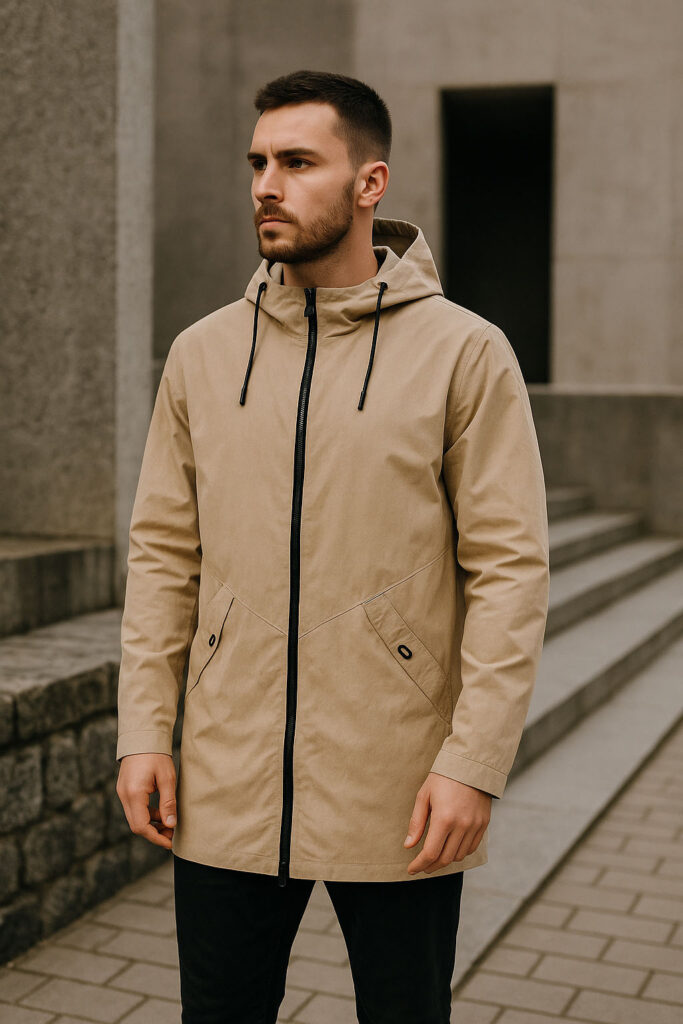 Kurtka męska wiatrówka beżowa z kapturem 2XL
