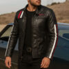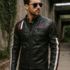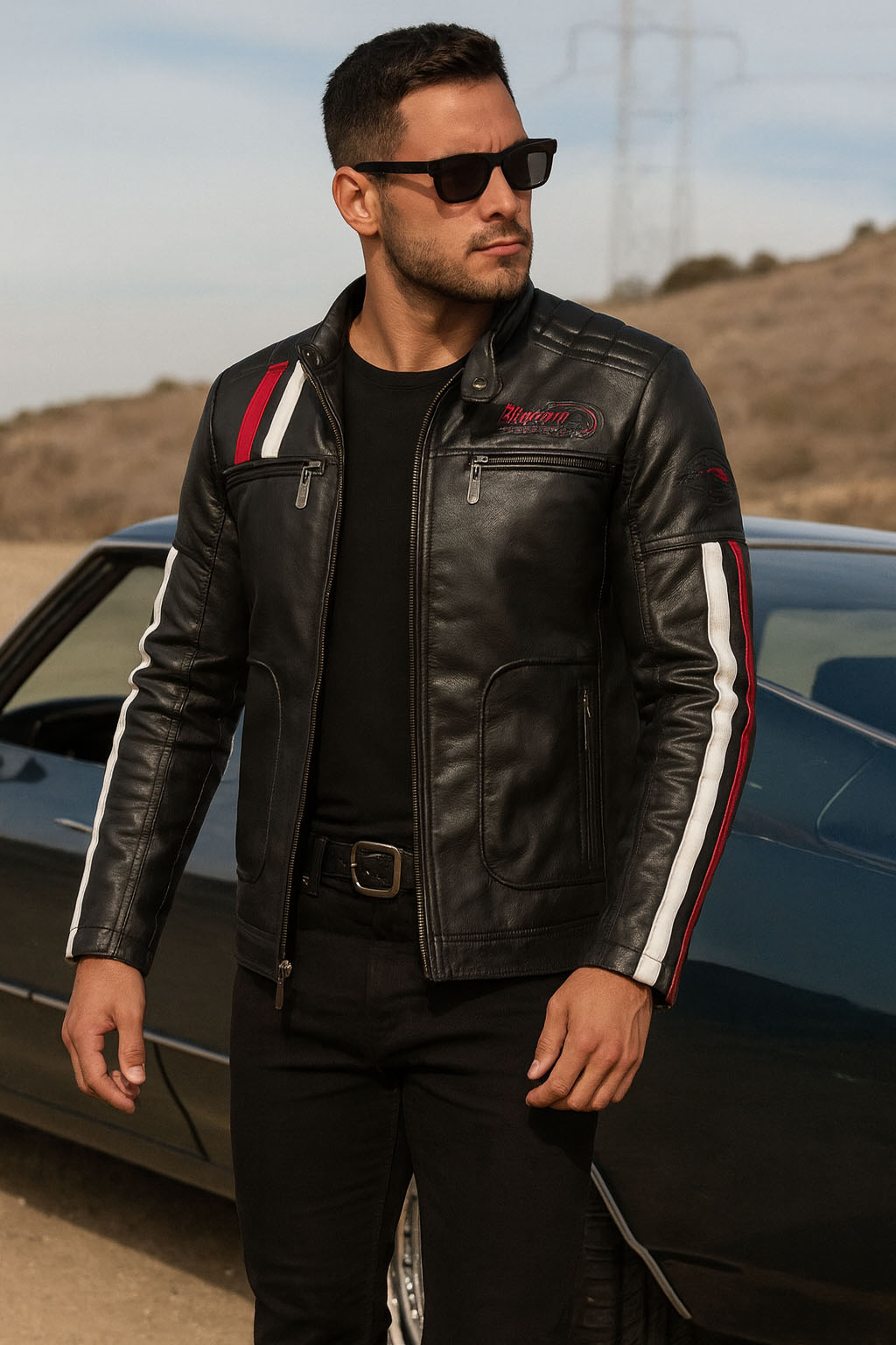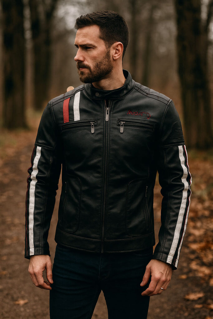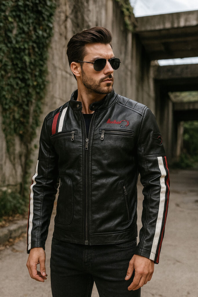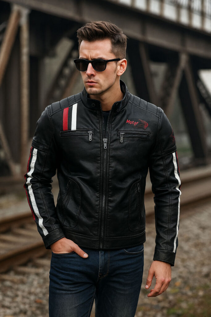 Stylowa męska ramoneska wykonana z wysokiej jakości skóry ekologicznej to idealny wybór dla osób ceniących nowoczesny wygląd, wygodę oraz funkcjonalność. Jej sportowy charakter podkreślają kontrastowe paski wzdłuż rękawów i na ramionach, nadając kurtce dynamiczny, motocyklowy styl. Doskonale sprawdzi się na co dzień, jak i podczas wyjść, zapewniając komfort i swobodę ruchów.