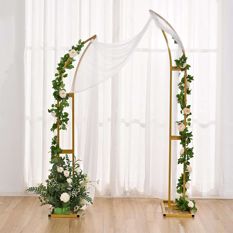 Prezentujemy elegancki metalowy łuk dekoracyjny w kolorze złotym, który doskonale sprawdzi się jako wyjątkowa ozdoba podczas wesel, ślubów plenerowych, przyjęć okolicznościowych, a także sesji fotograficznych czy eventów. Dzięki swojej stabilnej konstrukcji i nowoczesnemu designowi, łuk stanie się centralnym punktem każdej aranżacji, podkreślając wyjątkowość uroczystości.