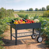 Wózek wyposażono w pojemną, podwyższoną skrzynię o wymiarach 90 × 40 cm, która doskonale sprawdzi się jako donica pod warzywa, zioła, kwiaty sezonowe, rośliny ozdobne czy małe krzewy. Podwyższona konstrukcja ułatwia pracę – nie trzeba się schylać, dzięki czemu pielęgnacja roślin jest bardziej komfortowa.