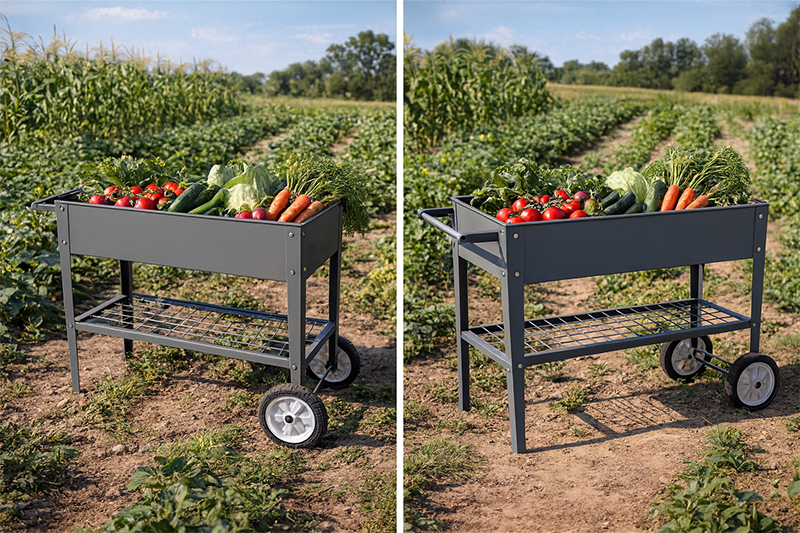 Praktyczny, stabilny i wyjątkowo funkcjonalny metalowy wózek ogrodowy na warzywa i kwiaty to idealne rozwiązanie dla miłośników ogrodnictwa, upraw balkonowych oraz roślin dekoracyjnych. Dzięki przemyślanej konstrukcji i mobilności umożliwia wygodne sadzenie, pielęgnację i przenoszenie roślin w dowolne miejsce.