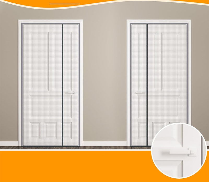 Wbudowane silne magnesy zapewniają szybkie i automatyczne zamykanie moskitiery po przejściu. Rozwiązanie to jest niezwykle wygodne – drzwi zamykają się samoczynnie, bez konieczności użycia rąk.