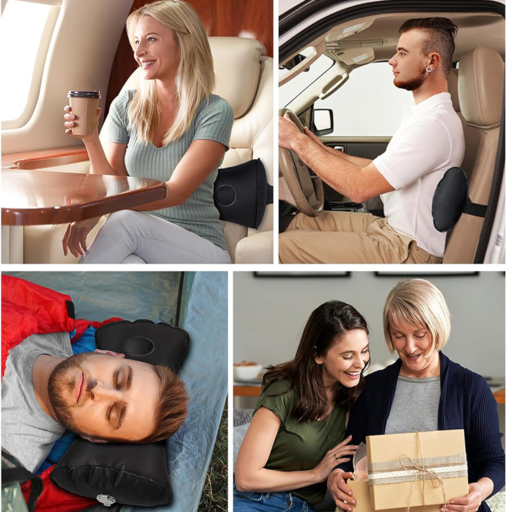 Wykonana z wytrzymałych i przyjemnych w dotyku materiałów, zapewnia komfort nawet podczas wielogodzinnego użytkowania. Wyposażona w regulowany pasek mocujący, umożliwia łatwe przymocowanie do fotela samochodowego, biurowego lub krzesła. Po nadmuchaniu utrzymuje stabilną formę, a po wypuszczeniu powietrza zajmuje bardzo mało miejsca – zmieści się w torbie czy plecaku.