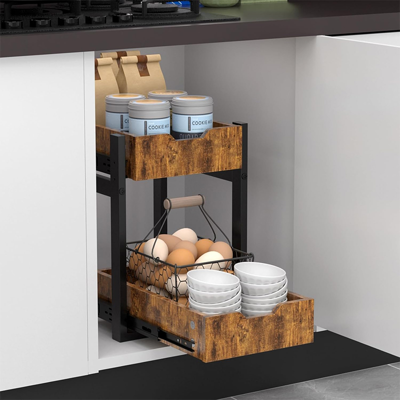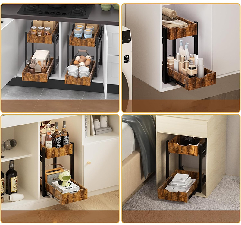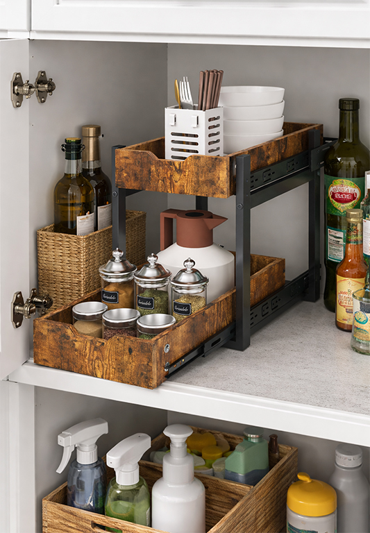 2-poziomowy wysuwany organizer do szafki z prowadnicami tłumiącymi
