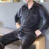 Dwuczęściowy komplet piżamy nocnej welurowej to luksusowy zestaw, który łączy w sobie wygodę, delikatność i elegancję. Aksamitny materiał sprawia, że cały zestaw wygląda pięknie i dodaje uczucia luksusu podczas snu. Pięknie się błyszczy w świetle.