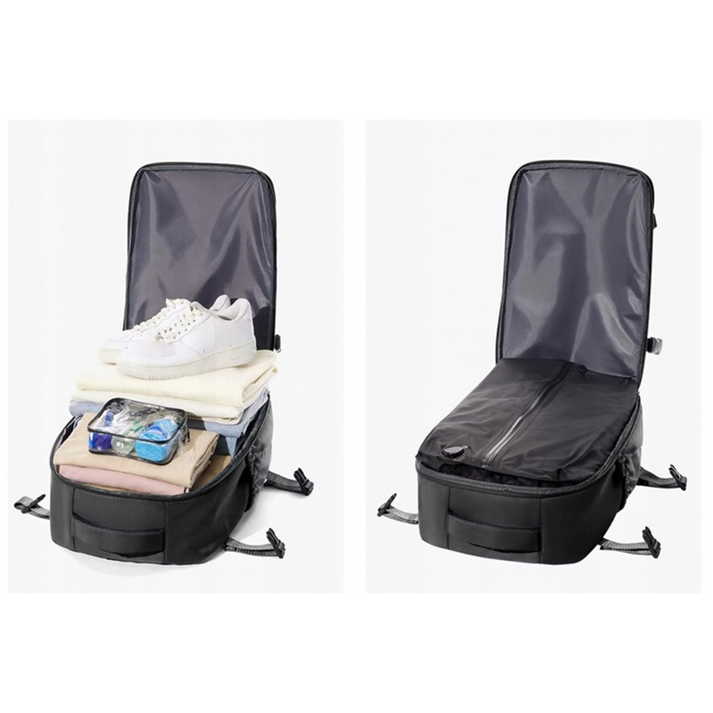 Funkcjonalny plecak kompresyjny próżniowy, zaprojektowany z myślą o osobach podróżujących, aktywnych oraz ceniących porządek i wygodę na co dzień. Dzięki przemyślanej konstrukcji i kompaktowym wymiarom doskonale sprawdzi się jako bagaż podręczny, mieszczący się w wymaganiach większości linii lotniczych.
