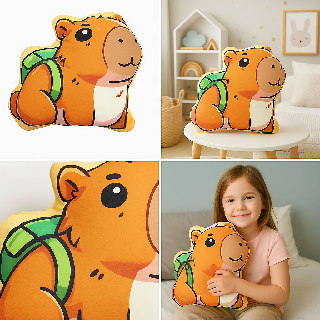 Urocza poduszka dekoracyjna w kształcie kapibary to połączenie miękkiej przytulanki i ozdoby, która wprowadzi ciepło i radość do każdego wnętrza. Wykonana z przyjemnego w dotyku pluszu, doskonale sprawdzi się zarówno w pokoju dziecka, jak i na kanapie w salonie. Dzięki żywym kolorom i zabawnemu wzorowi dodaje wnętrzu wyjątkowego charakteru. Idealna do relaksu, drzemki lub jako prezent dla miłośników słodkich zwierząt. Poduszka jest lekka, wygodna i łatwa w utrzymaniu w czystości.