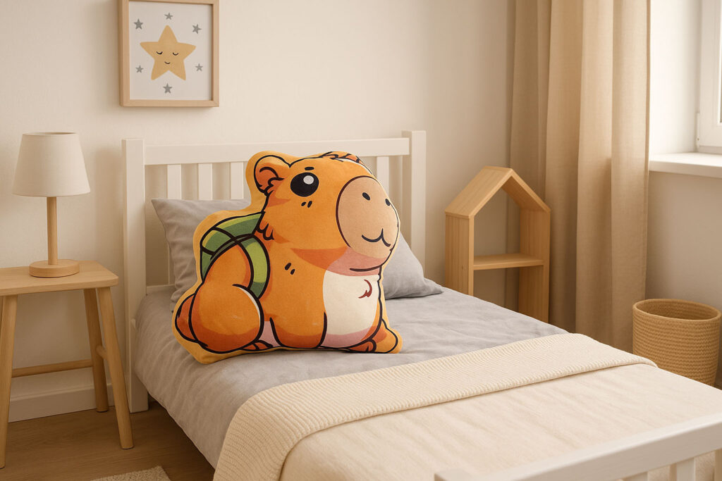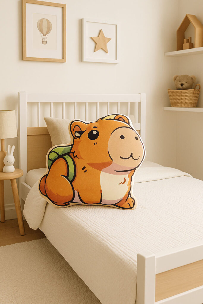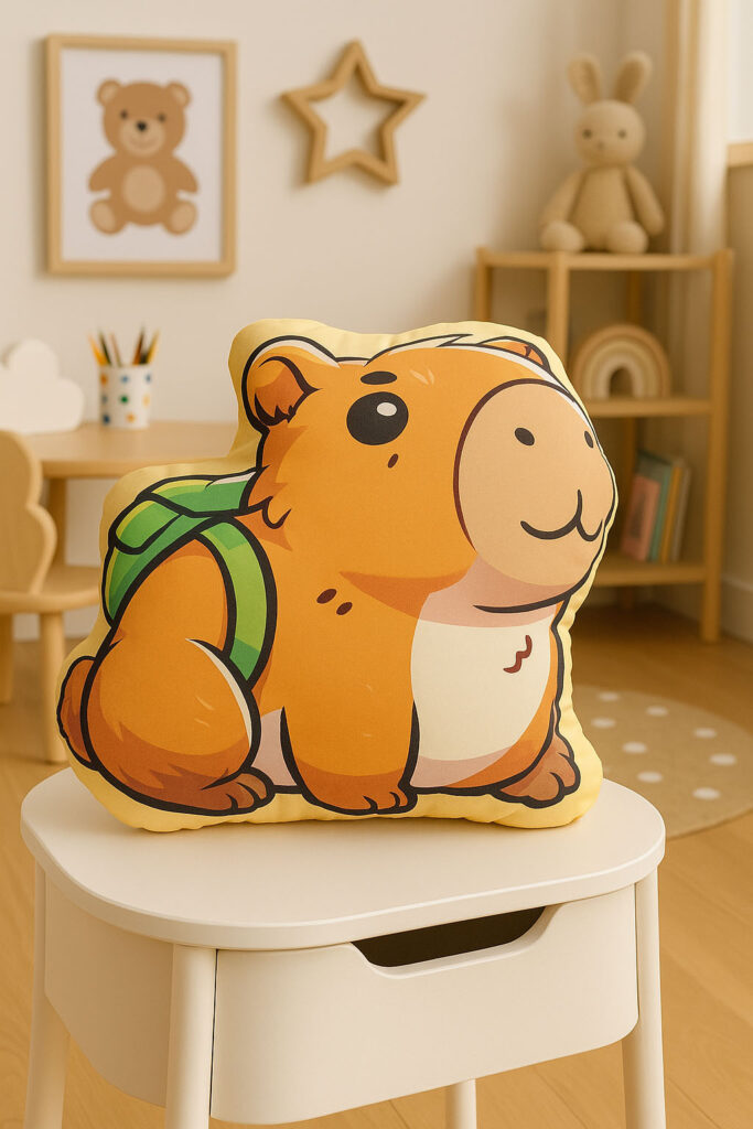 - Uroczy design kapibary – doskonała dekoracja do pokoju dziecięcego lub salonu.