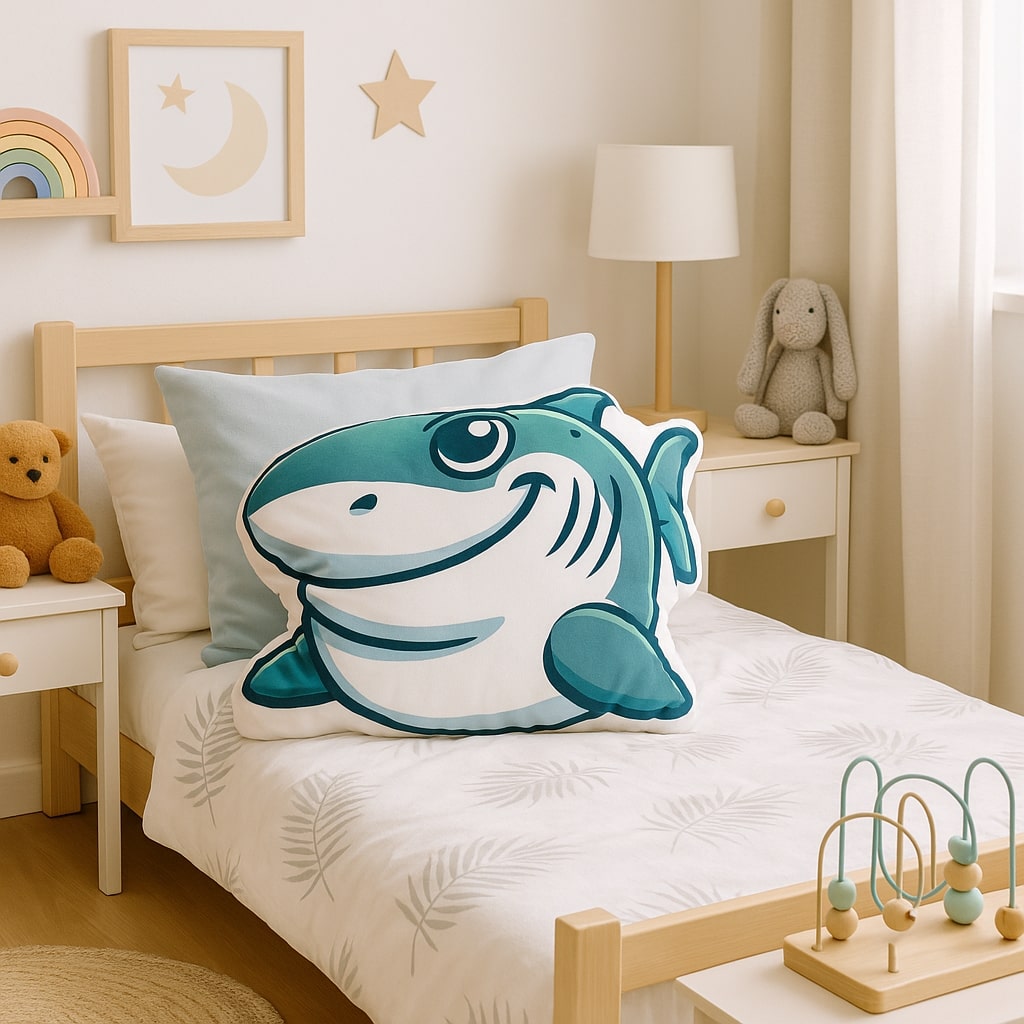 - Dekoracyjny kształt dopasowany do grafiki rekina.