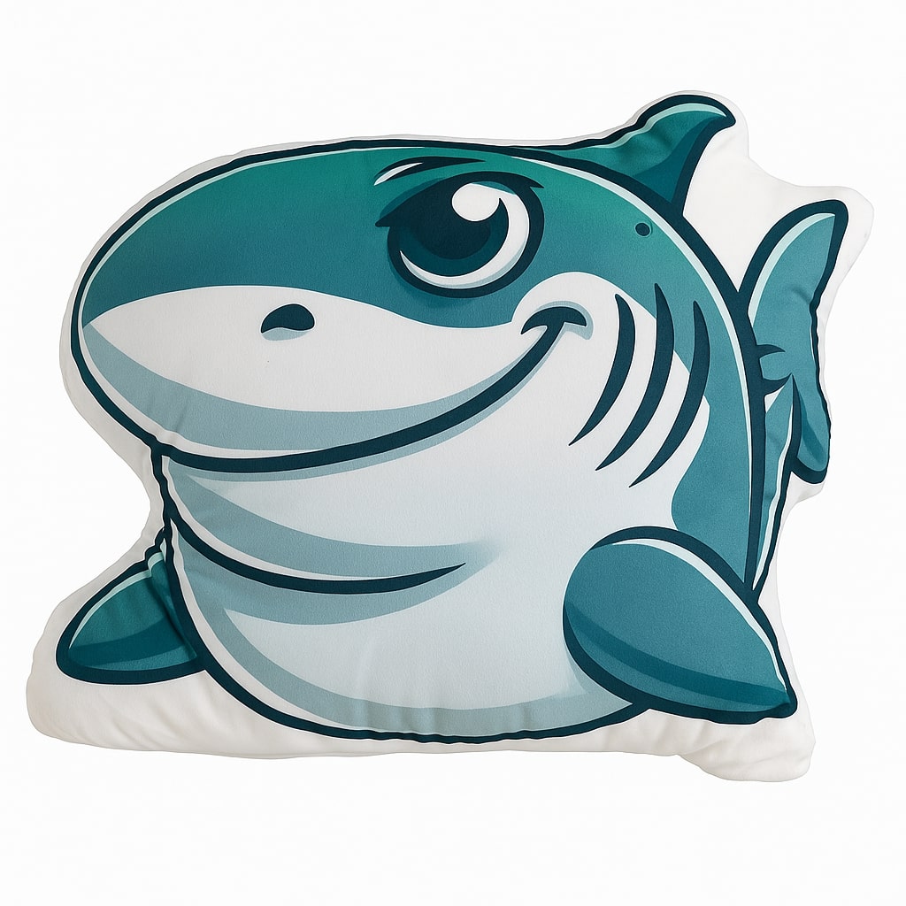Miękka pluszowa poduszka dekoracyjna z motywem uśmiechniętego rekina. Idealnie sprawdzi się jako przytulanka dla dziecka oraz efektowna ozdoba sofy lub łóżka. Odcienie turkusu i bieli wprowadzają świeży morski klimat do wnętrza. Nieregularny, wycinany kształt przyciąga wzrok i nadaje pomieszczeniu charakteru. Poręczny rozmiar 42 x 35 cm zapewnia wygodę podczas odpoczynku i zabawy. Doskonały pomysł na prezent dla miłośników morskich zwierząt.