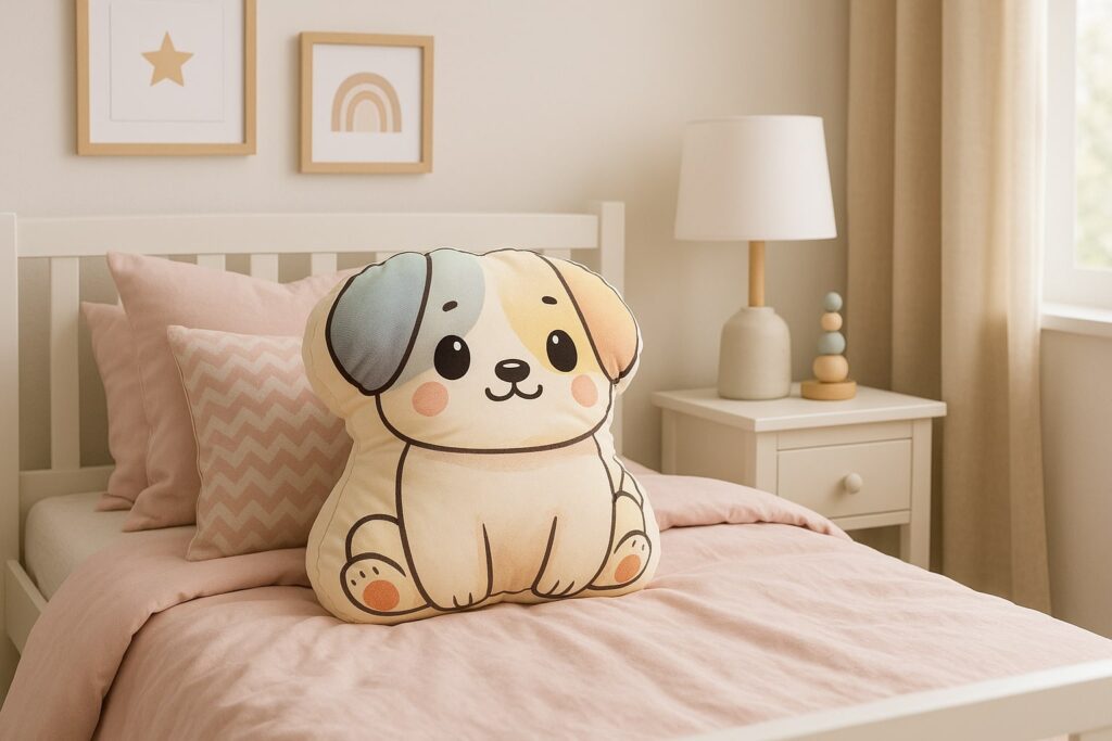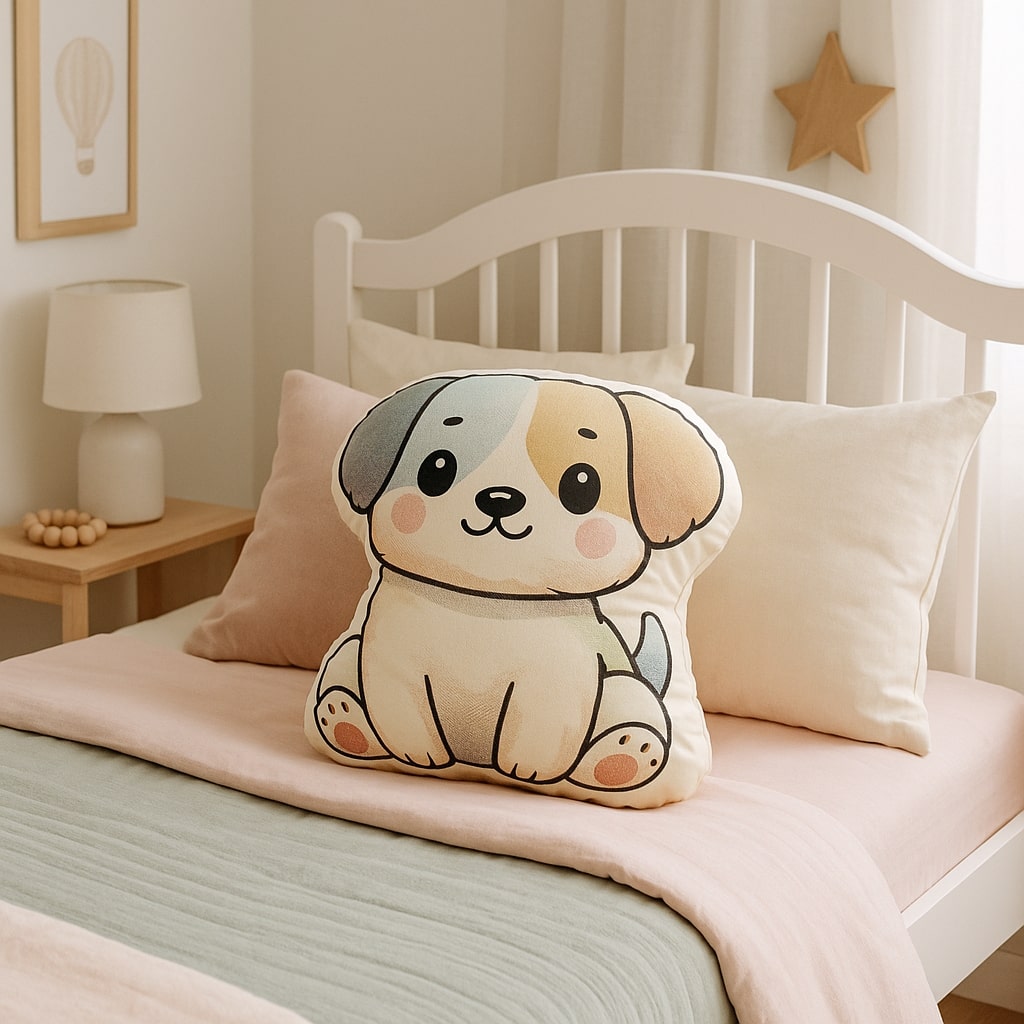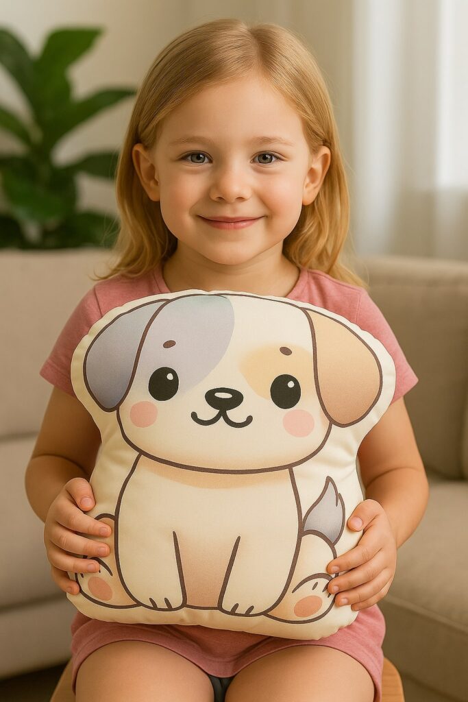 Miękka, pluszowa poduszka w motywie pieska to połączenie dekoracji i przytulanki. Pastelowe kolory oraz sympatyczny rysunek ocieplą pokój dziecka, sypialnię czy salon. Profilowany kształt sprawia, że poduszka wyróżnia się na sofie i zachęca do relaksu. Poręczne wymiary 38×28 cm ułatwiają zabranie jej na fotel, do auta lub w podróż. To świetny pomysł na prezent dla miłośników zwierząt w każdym wieku. Wykonanie z miękkiego pluszu zapewnia przyjemny w dotyku komfort użytkowania.