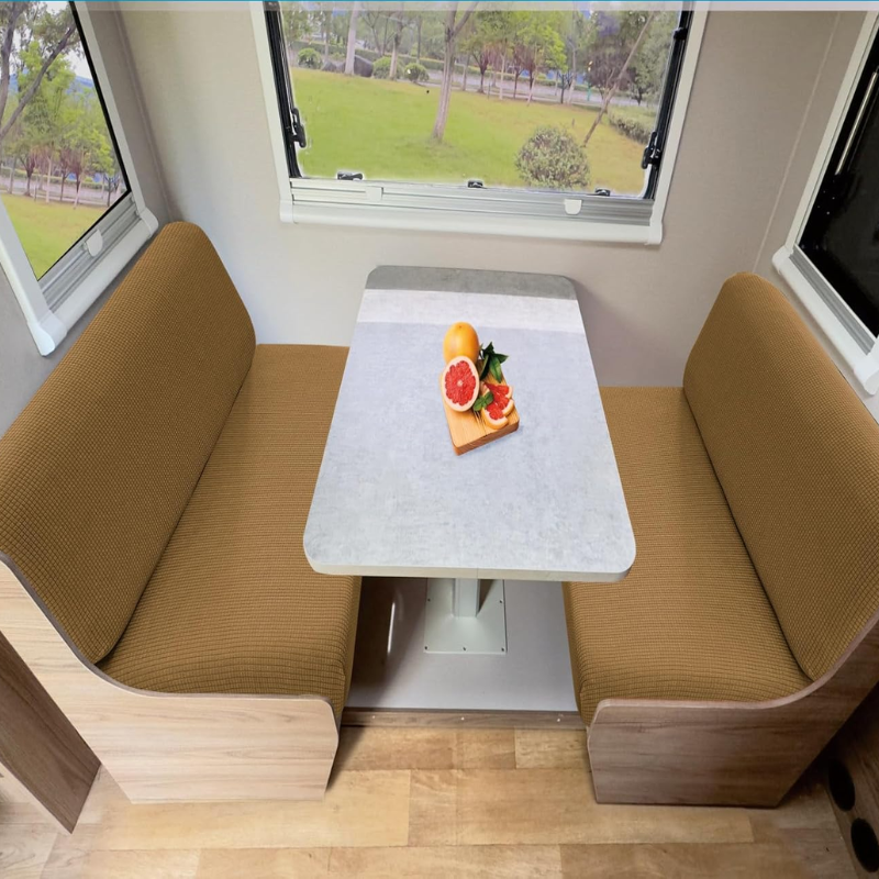 Uniwersalne pokrowce na siedziska i oparcia przeznaczone do kamperów, przyczep kempingowych oraz caravanów to praktyczne rozwiązanie dla osób chcących odświeżyć wnętrze pojazdu i zabezpieczyć oryginalną tapicerkę. Elastyczny materiał z dodatkiem spandexu idealnie dopasowuje się do poduszek, zapewniając estetyczny wygląd i komfort użytkowania. Zastosowanie zamków błyskawicznych poprawia stabilność oraz ułatwia zakładanie pokrowców. Produkt sprawdzi się podczas intensywnego użytkowania w podróży. Kolor camel nadaje wnętrzu ciepły i spójny charakter.