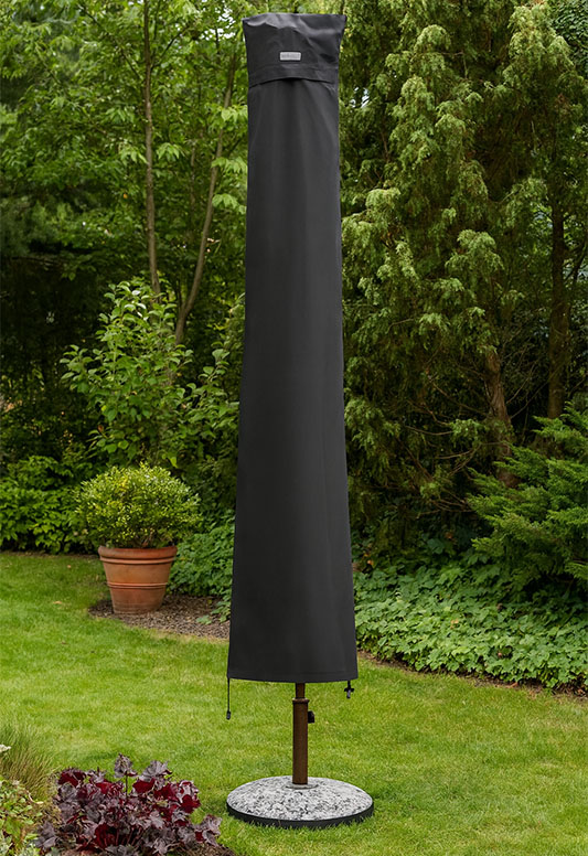Nie zakładaj pokrowca na parasol, który jest gorący po ekspozycji na słońce gorąca tkanina lub metal mogą zniszczyć pokrowiec i skrócić jego trwałość.