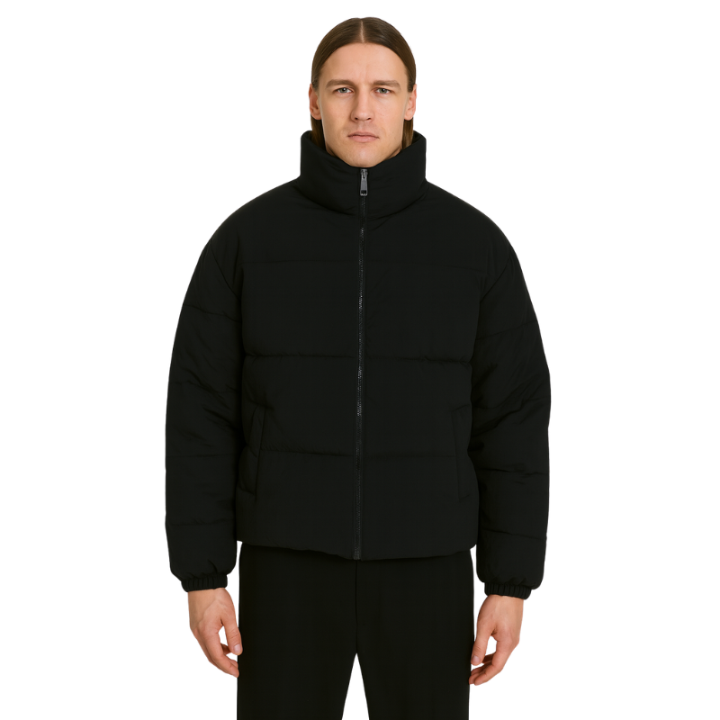 Klasyczna czarna kurtka męska w pikowanym stylu to idealny wybór na chłodne dni. Wypełnienie syntetyczne gwarantuje ciepło i komfort, a prosty krój sprawia, że pasuje do każdej codziennej stylizacji – zarówno miejskiej, jak i sportowej.