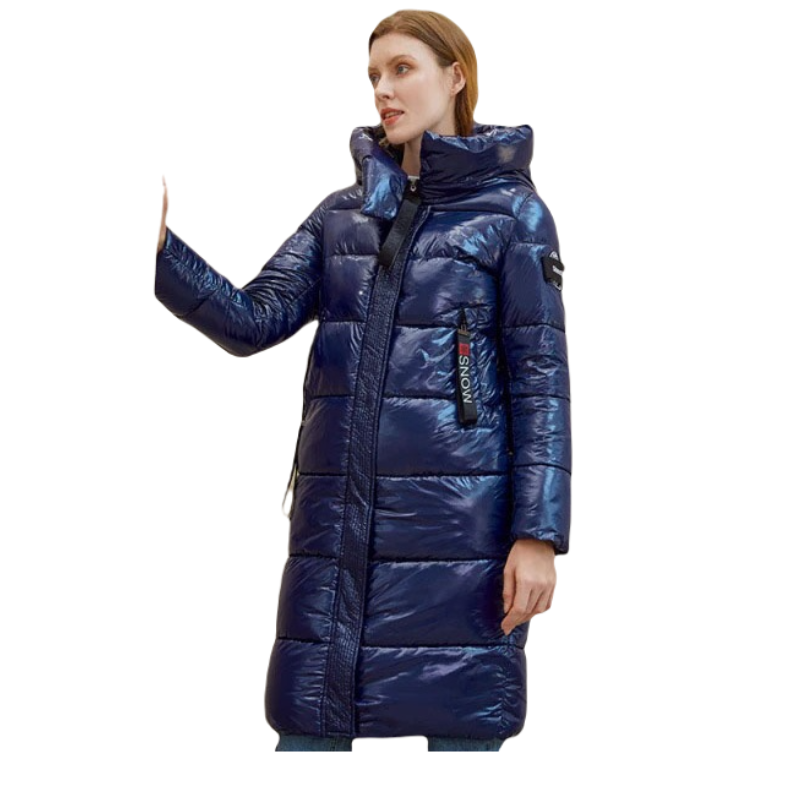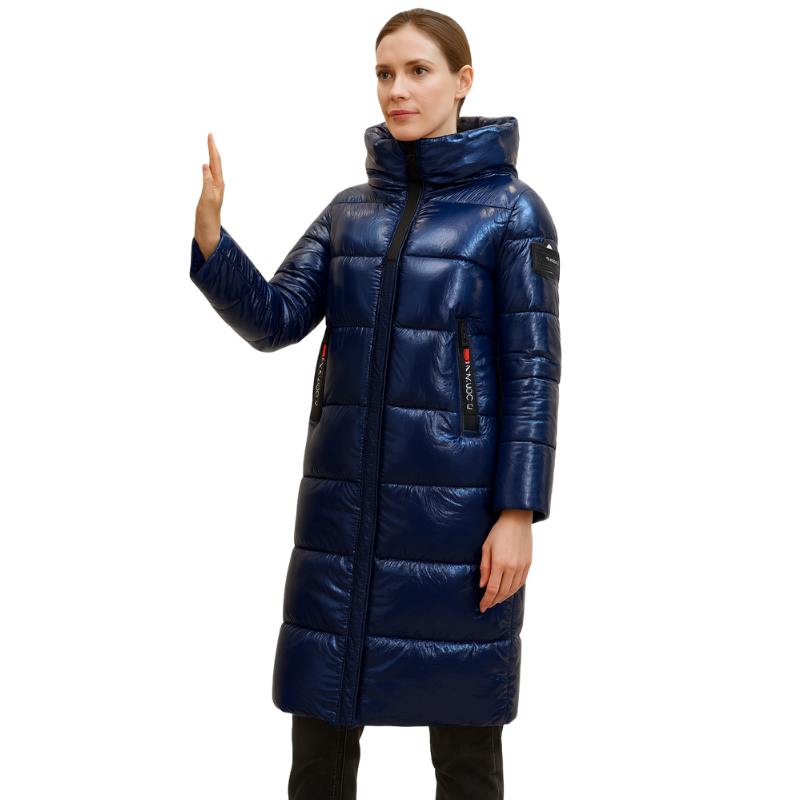 Długa, ocieplana kurtka damska w kolorze głębokiego niebieskiego to idealne połączenie funkcjonalności i elegancji. Wykonana z wysokiej jakości poliestru i ocieplona sztucznym puchem, doskonale sprawdzi się w okresie jesienno-zimowym, chroniąc przed chłodem i wiatrem. Jej pikowana konstrukcja nadaje nowoczesnego charakteru, a długość do kolan zapewnia dodatkowe ciepło i wygodę. Zapięcie na zamek błyskawiczny w połączeniu z napami skutecznie zabezpiecza przed przenikaniem zimna. Dwie kieszenie zapinane na suwak są nie tylko praktyczne, ale również podkreślają nowoczesny styl kurtki.